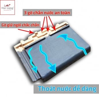 Thoát nước được thiết kế tối ưu với 3 gờ chắn nước và 2 rãnh thoát nước, giúp cho ngói thoát nước dễ dàng.