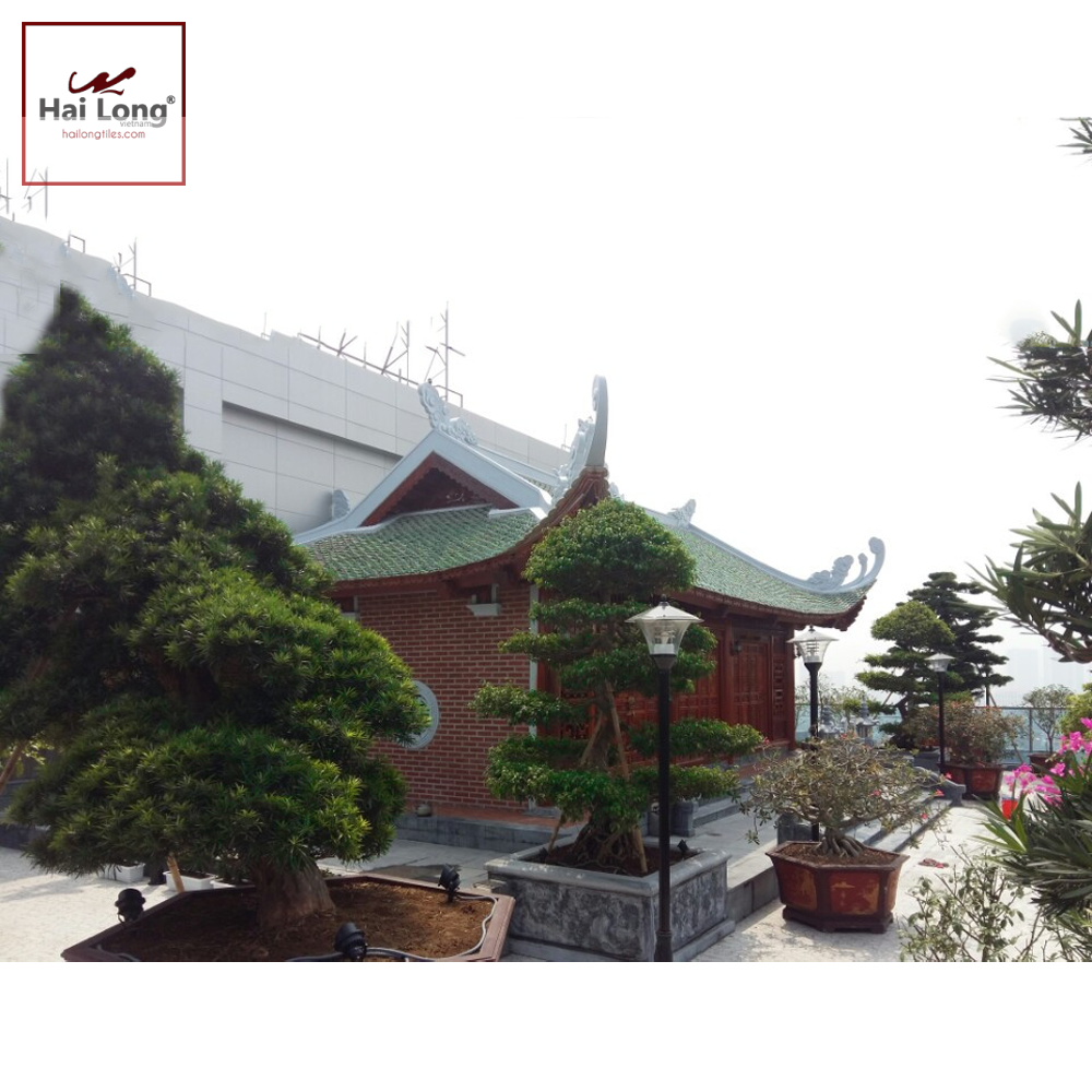 Ngói mũi hài cổ Hải Long Tiles tráng men Hanh Vàng Ánh Xanh