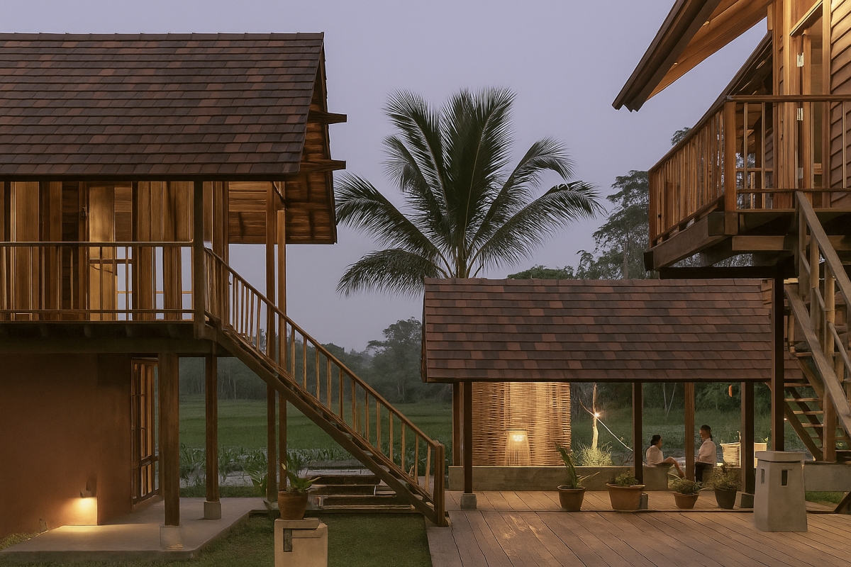 iến trúc Retreat – Ẩn mình trong thiên nhiên, tôn vinh sự tĩnh lặng, đề cao yếu tố thiên nhiên, không gian mở, vật liệu tự nhiên và cảm giác “rút khỏi thế giới” để tìm về bên trong. Ngói ManVillas – với kết cấu đơn giản, tone màu như đất, như rơm, như gió mùa cũ – là lựa chọn hoàn hảo cho những mái nhà ẩn mình giữa rừng thông, bên dòng suối, hay giữa những đồi chè thanh mát.