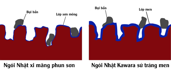 Ngói Nhật sứ tráng men khác với ngói nhật xi măng phun sơn như thế nào?